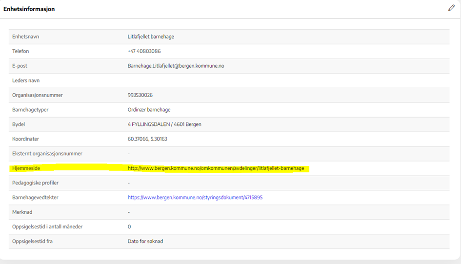 Sjekk at adressen til barnehagens hjemmeside er riktig (klikk på linken):