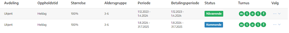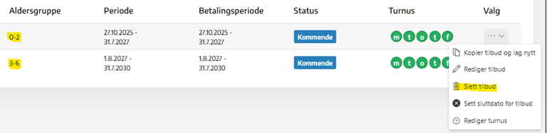 Se hjelpetekst Redigere tilbud om barnehageplass