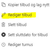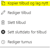 Gå inn igjen på «Valg» og trykk «Kopier tilbud og lag nytt»