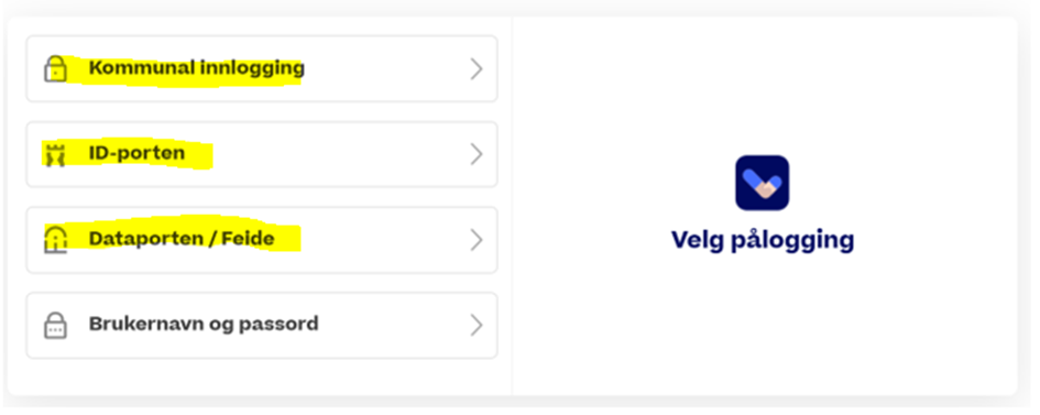 Kommunale barnehager må velge «Dataporten/Feide» eller «Kommunal innlogging» for pålogging.